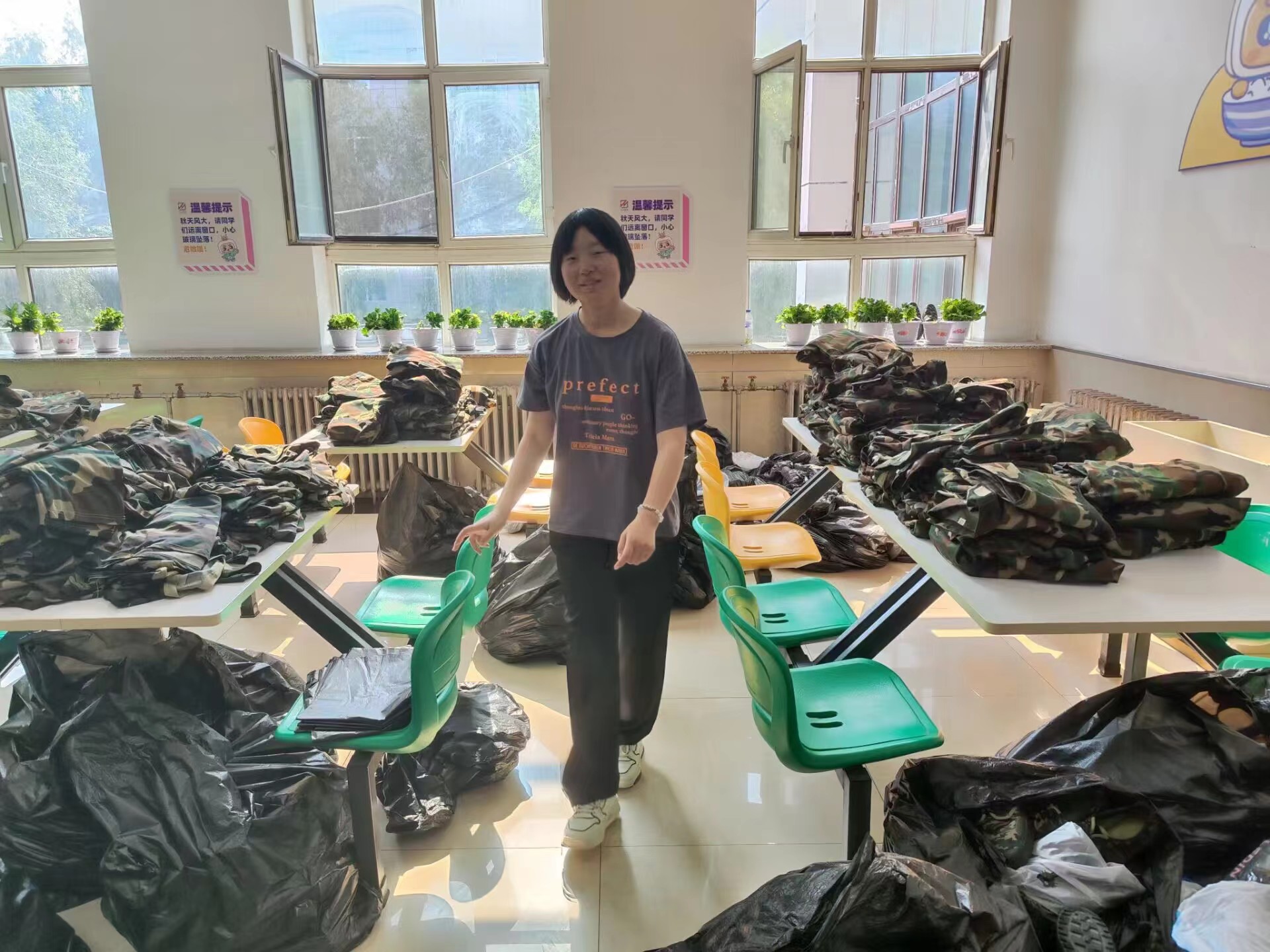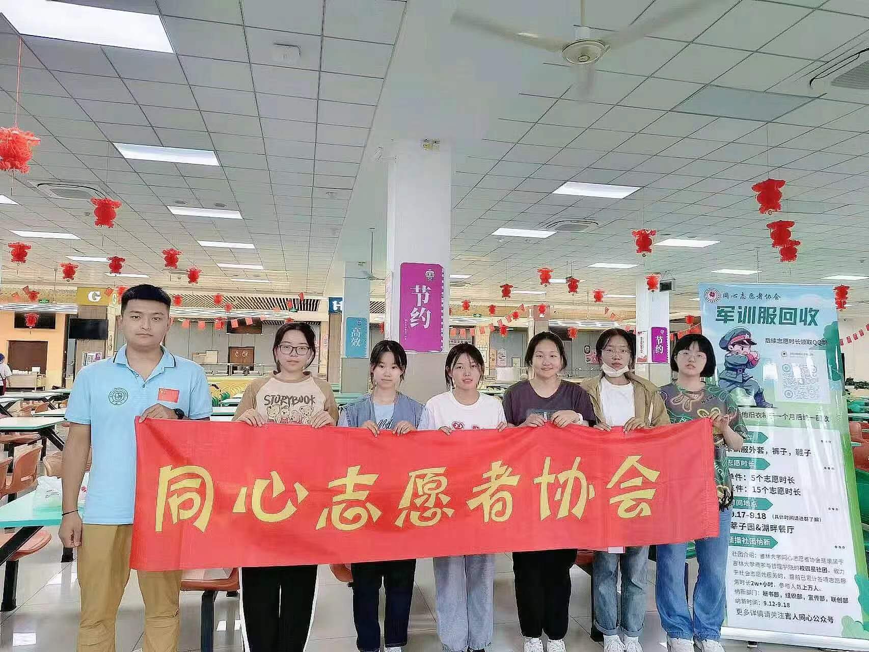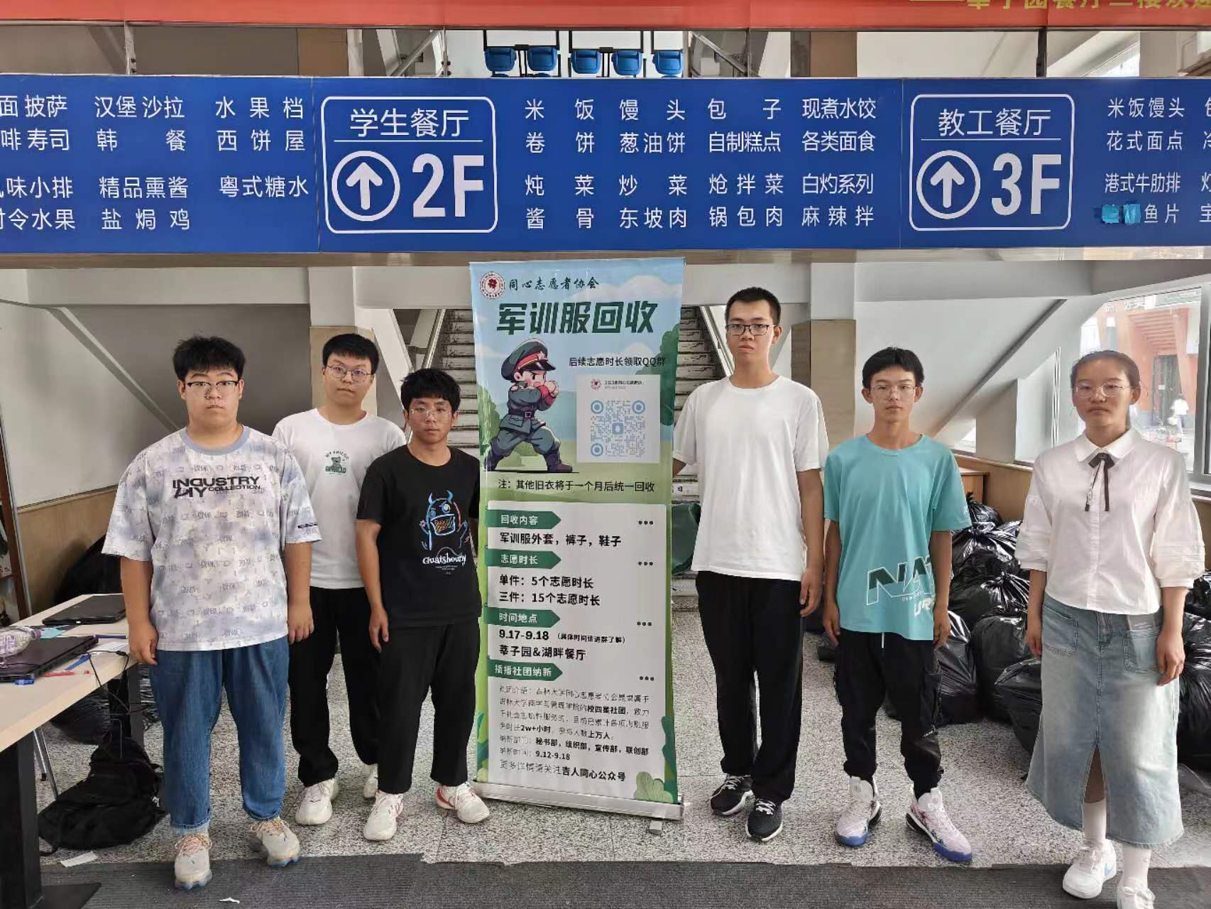为弘扬勤俭、节约的美德,践行“绿水青山就是金山银山”的绿色生活方式,传递“奉献、友爱、互助、进步”的志愿者精神,在院团委的支持下,365英国上市公司同心志愿者协会于2023年9月16日至9月17日在翔远餐厅、莘子园餐厅以及湖畔餐厅举行了军训服回收活动,将回收的军训服捐赠给食堂的工作人员。