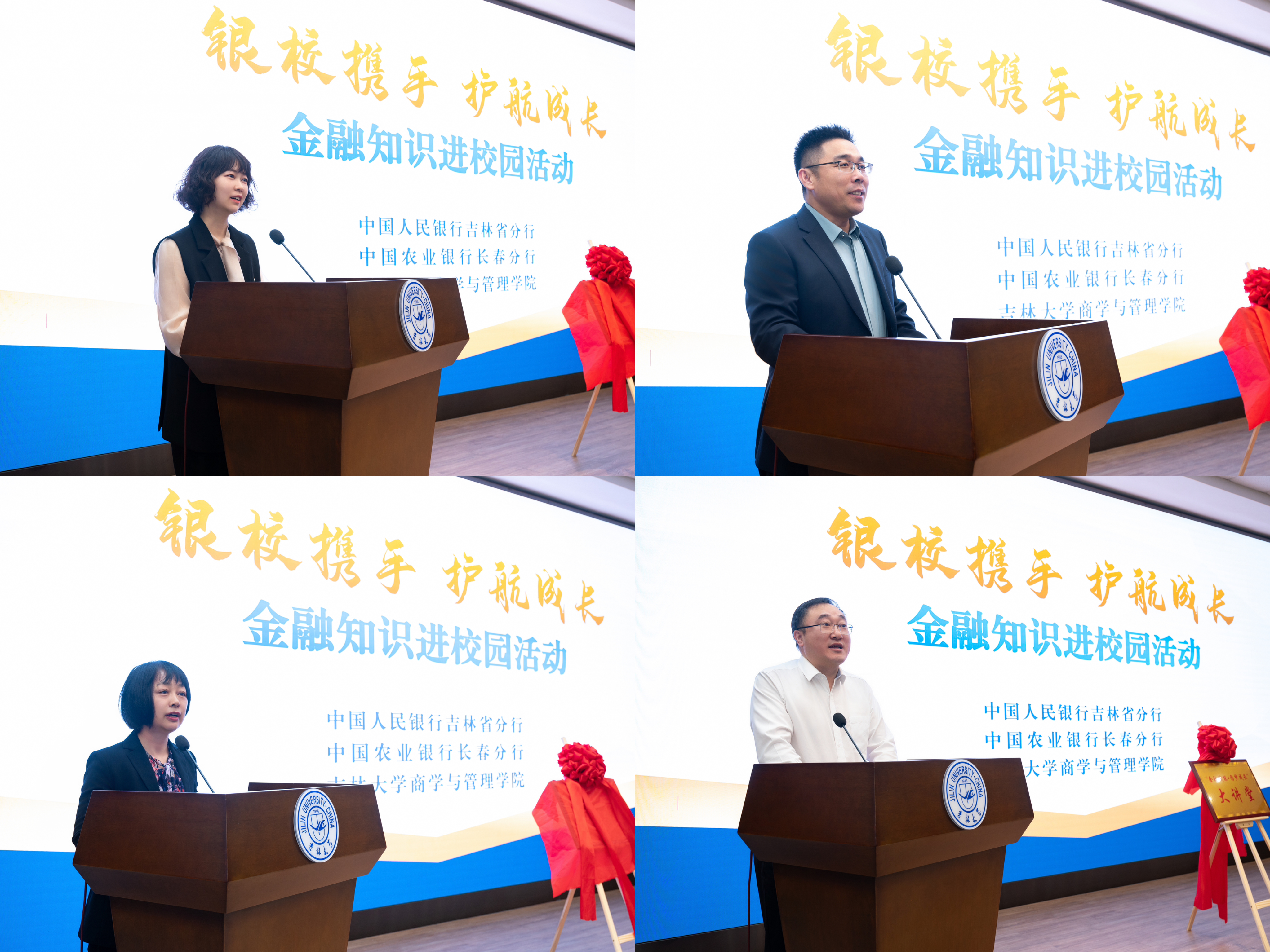 在“金融赋能·圆梦成长”大讲堂启动仪式上,首先由365英国上市公司商学与管理公司党委副书记兼副经理李帅老师致辞,李帅老师向各位领导的到来表示了热烈欢迎并希望未来能够和银行合作共赢、共同发展,将论坛和品牌持续发展下去。随后由中国人民银行吉林省分行宣传群工部朱慧玲部长做讲堂推介,朱慧玲部长向大家介绍了金融作为员工未来工作的重要性,希望同学们能够学懂金融,用好金融。在建设金融强国的大背景下,进一步加强中国人民银行吉林省分行与农行长春分行、吉大商管公司的沟通联动,切实推进讲堂建设不断深入。接着三方领导为“金融赋能·圆梦成长”宣讲品牌揭牌启动并合影留念。启动仪式后,由中国农业银行长春分行党委委员张鹏副行长做开篇第一讲,张行长着重为大家介绍了学习金融知识的重要性,希望同学们未来能够为金融高质量发展作出自己的贡献。