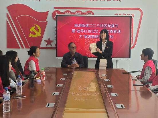 接下来是党员同志向青年员工赠书的环节。赠书活动为青年学子提供了深入研读红色书籍的机会。员工通过阅读红色书籍,了解红色历史,更好的传承红色基因,厚植爱国情怀。