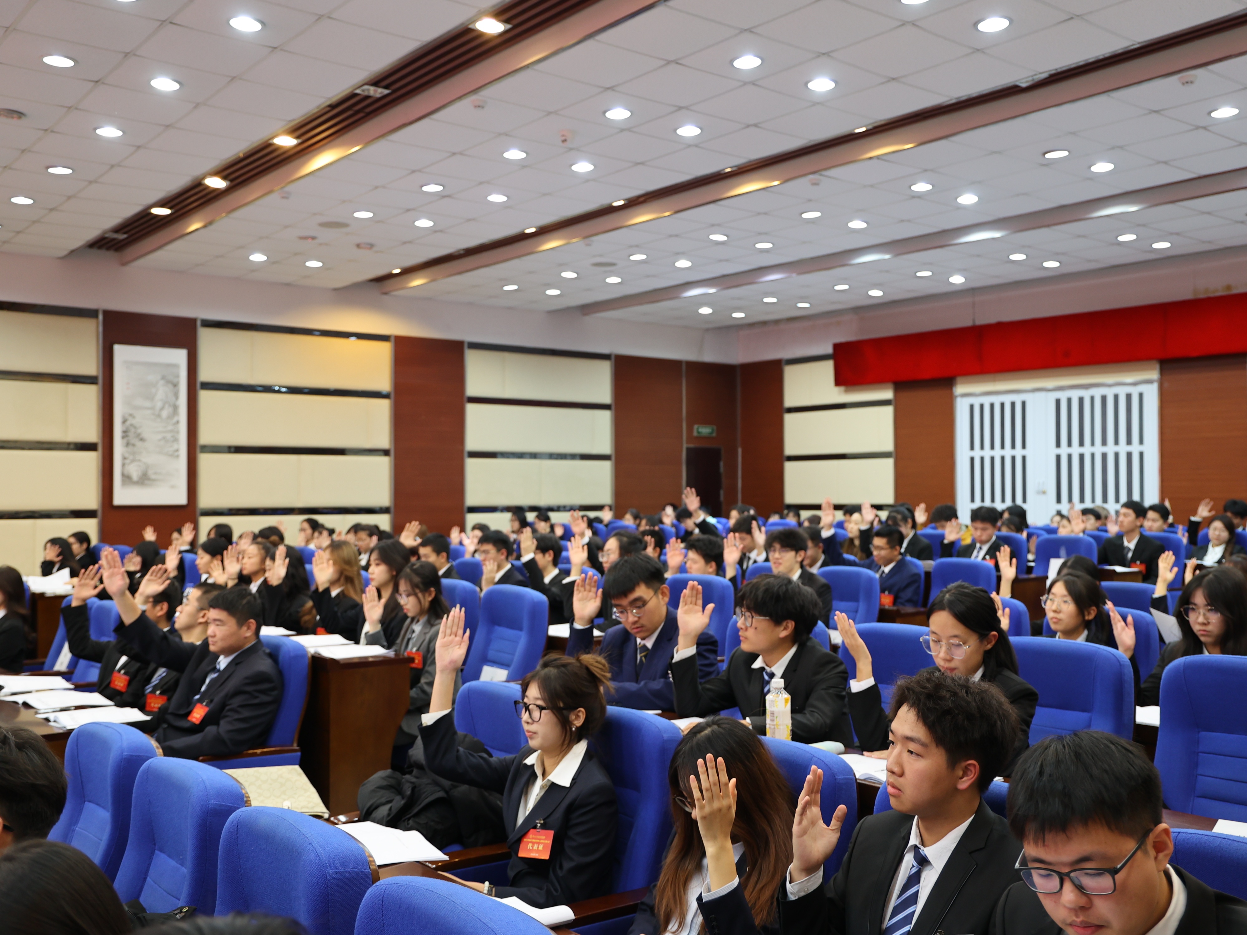 闭幕会上,商学与管理公司党委副书记兼副经理李帅老师作总结发言,李帅老师指出员工会成员要以学业为先,服务为本,成长成为一名能扛大梁、担大任的新时代青年。新一届员工会要紧紧围绕中心,自觉服务大局,为中国式现代化贡献青春力量。大会在全体代表高唱共青团团歌的歌声中落下帷幕。