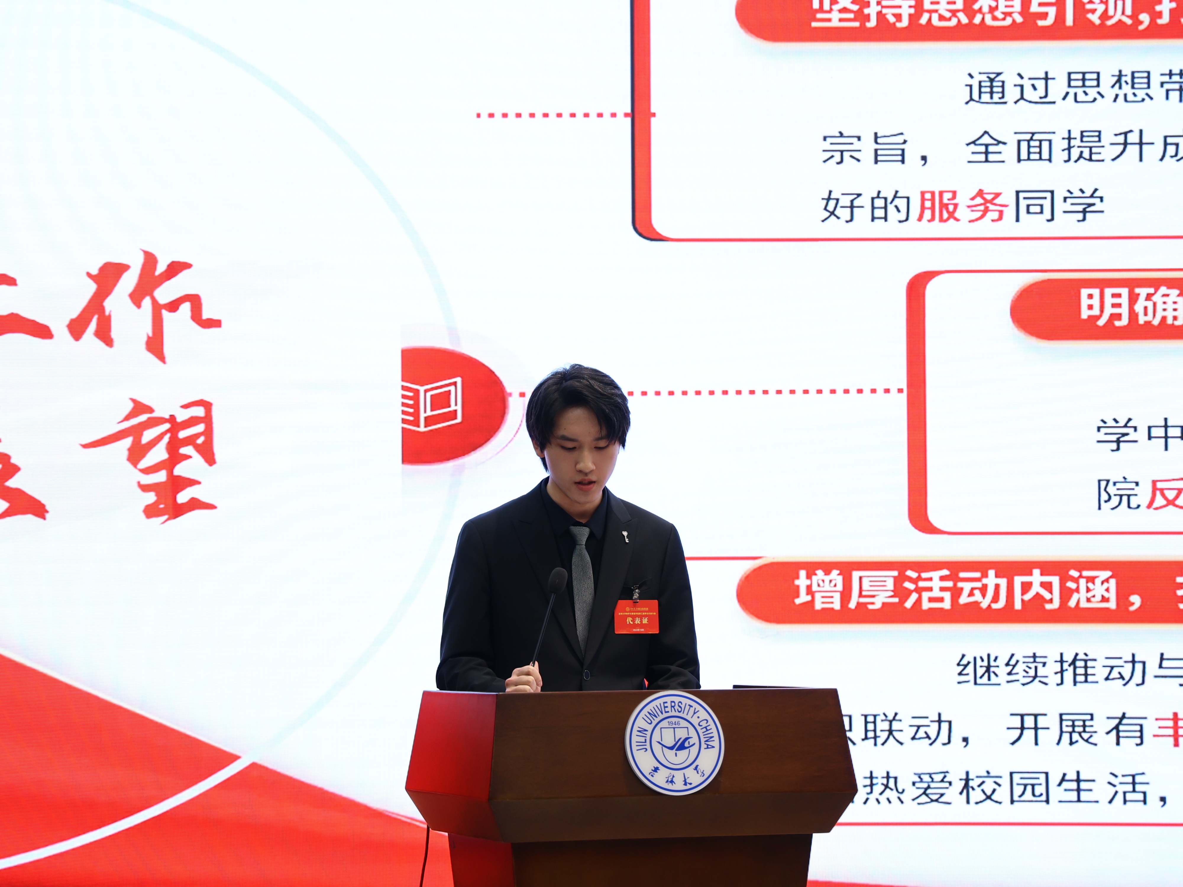 随后,大会总监票人丁越老师主持选举,与会代表庄重投票。大会最终选举姜鹄、马雨彤、田晟博为公司第四届员工会主席团成员。姜鹄代表第四届员工会主席团发言。他代表员工会组织表示,要在未来的工作中踔厉奋发、勇毅前行,以改革创新的理念推动公司员工会发展,以久久为功的信念成为让同学们想得起、用得着、信得过的新时代员工会。