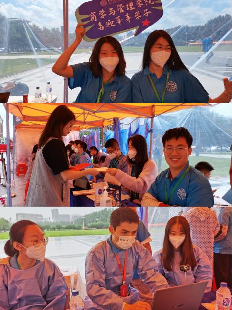 十一点左右,天空放晴,艳阳高照。忙碌了一上午的迎新志愿者们依旧坚守在各自的岗位上,尽管汗水打湿了蓝色工作服,他们依然满怀热情的引导新同学报到,办理手续。一声声学长学姐,一句句谢谢,都是对志愿者们的最大认可。21级工商管理班长王长春同学表示:“帮助下一届学弟学妹时,就仿佛看到了当初的自己,我们要做的就是传递商管公司历届承接的一种关怀,一种精神”。下午三点左右,商管公司工作点迎来了最后一名22级新生,志愿者们熟练地引导他完成了报到工作。至此,2022级研究生迎新工作圆满完成。