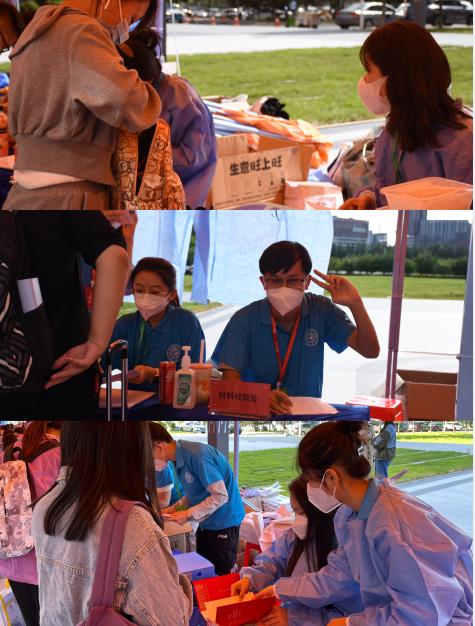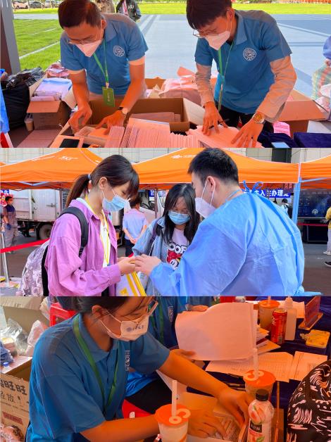 上午七时整,伴随着丝丝细雨,迎新志愿者们早早地来到报到处,在商管公司的蓝色帐篷下布置迎新工作所需的物件。由于昨天是新生到来的高峰期,大部分新生在昨天已经完成报到,所以今天现场的工作任务也相应减轻。即便如此,迎新志愿者们依然打起十二分的精神,以昂扬热情的面貌迎接新同学的到来,以认真负责的工作态度为新同学们解答困惑,测温、核对信息、收发材料等一系列工作同样有条不紊的进行着。