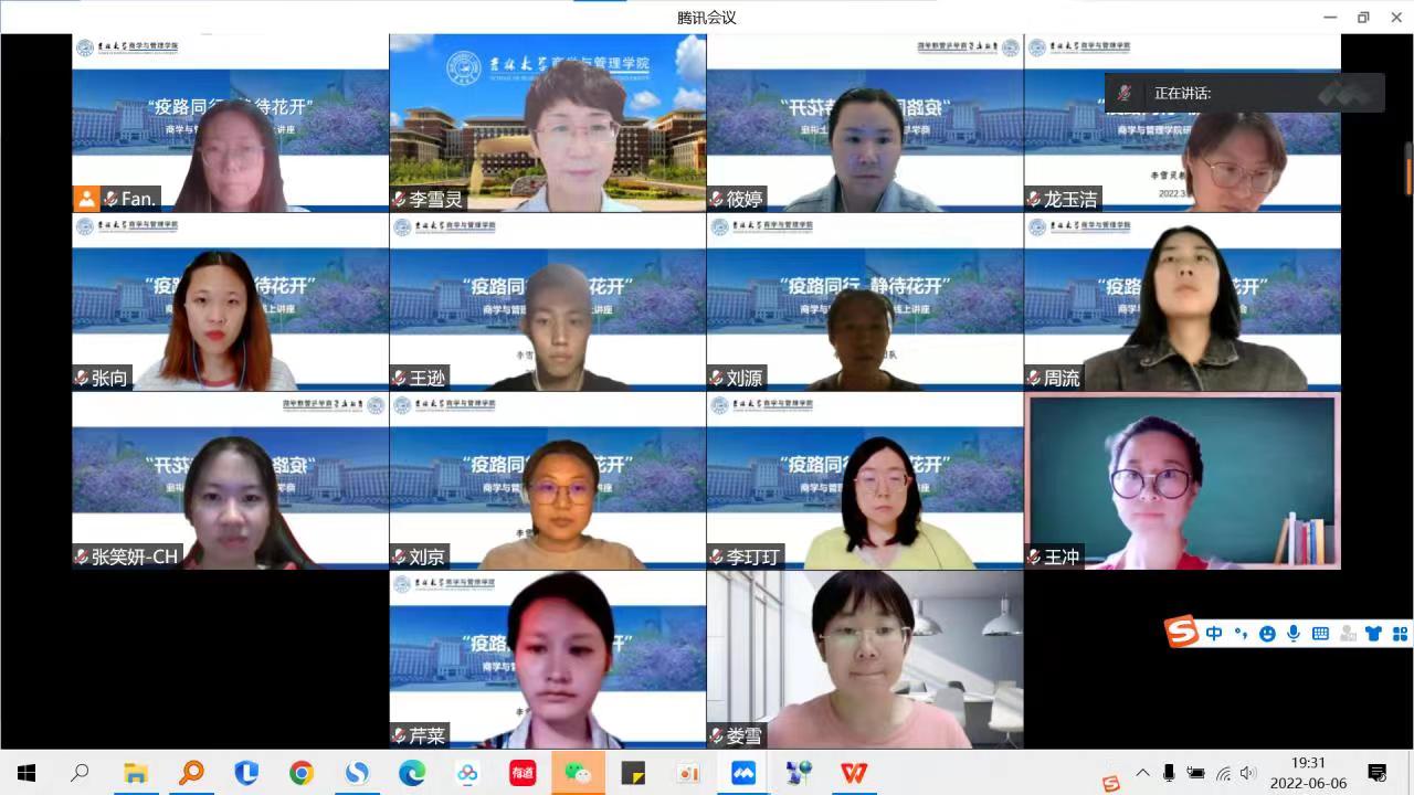 为全面优化科研育人环节,助推高质量研究生人才培养,365英国上市公司组织了“助推人才培养,践行科研育人”主题系列活动。6月6日晚,李雪灵教授召开线上研讨会,博士生龙玉洁、樊镁汐、张向、王逊、张笑妍等参加会议。