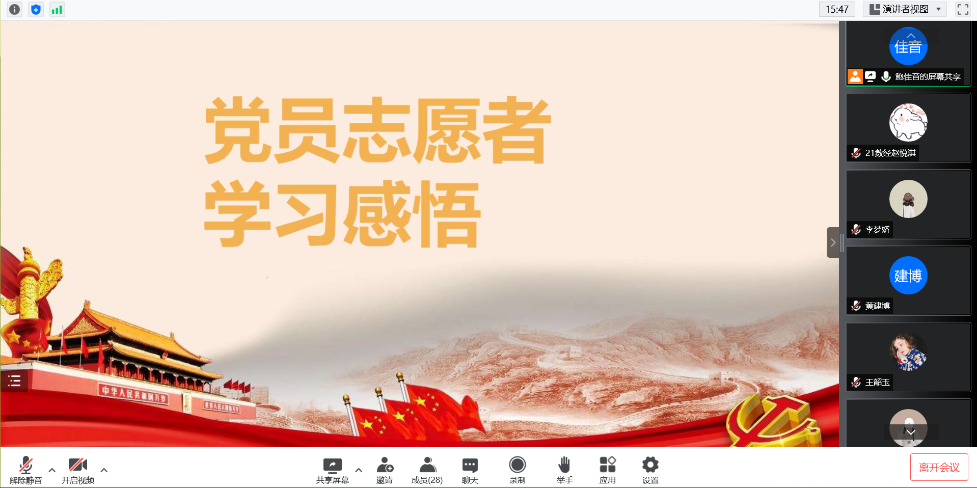 最后,党员志愿者同学们就此次学习内容发表了自己的学习感悟。