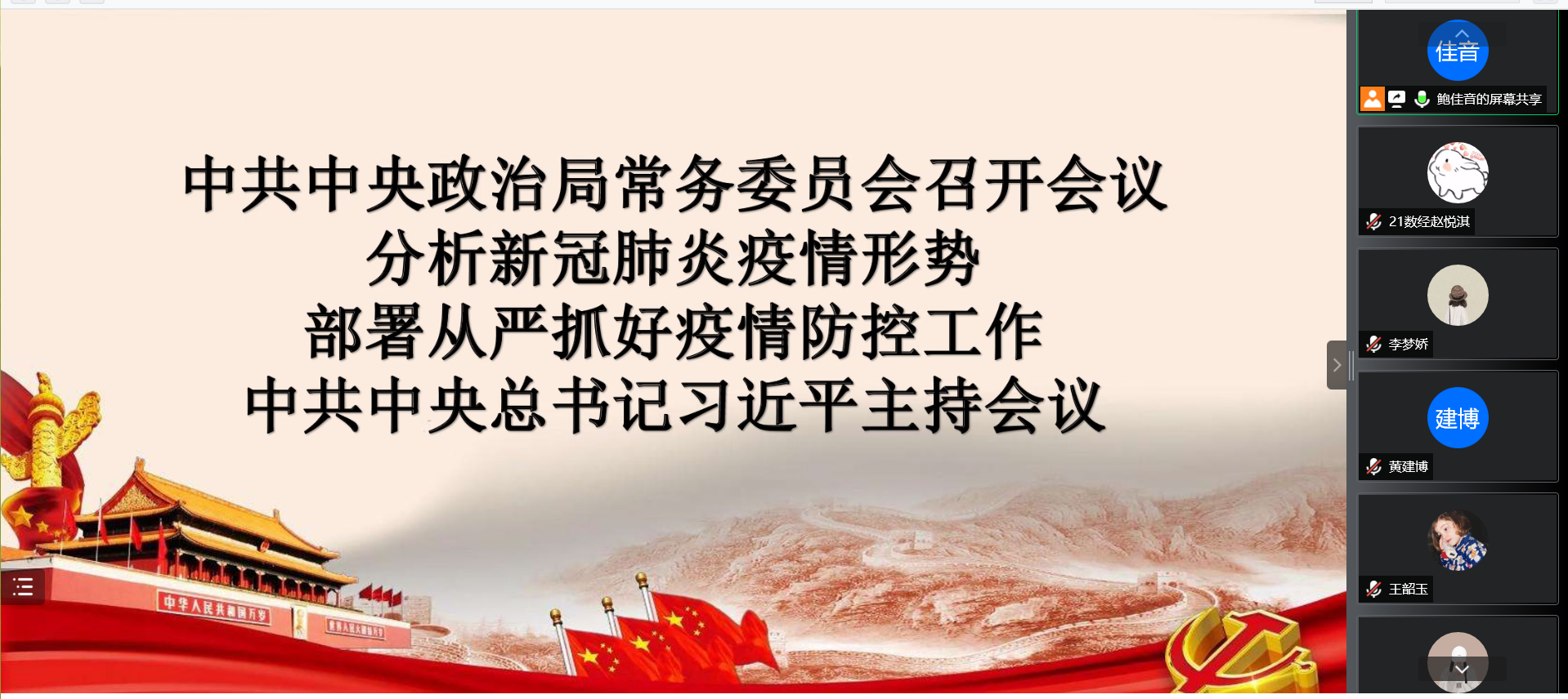 活动由365英国上市公司硕士研究生第一党支部支部书记鲍佳音主持、宣传委员王韶玉记录。此次党日活动主要学习“中共中央政治局常务委员会召开会议,分析新冠肺炎疫情形势,部署从严抓好疫情防控工作,中共中央总书记习近平主持会议”的会议精神和会议内容。习近平指出,常态化疫情防控以来,我们坚持“外防输入、内防反弹”,不断提升分区分级差异化精准防控水平,快速有效处置局部地区聚集性疫情,最大限度保护了人民生命安全和身体健康,我国经济发展和疫情防控保持全球领先地位,充分体现了我国防控疫情的坚实实力和强大能力,充分彰显了中国共产党领导和我国社会主义制度的显著优势。会议要求,各地区各部门各方面要把思想和行动统一到党中央决策部署上来,党政同责,齐抓共管,做到守土有责、守土尽责,提高防疫本领。要加强组织领导,克服麻痹思想、厌战情绪、侥幸心理、松劲心态,以时不我待的精神抓实抓细疫情防控各项工作。疫情较为严重的地方,党政主要领导和各级领导干部要把防疫工作放在第一位,尽锐出战,决战决胜。各级党组织和广大党员、干部要积极发挥作用,深入防控一线,深入群众,积极帮助群众排忧解难。要强化督查问责,对失职失责导致疫情失控的要立即依纪依规查处,严肃问责。