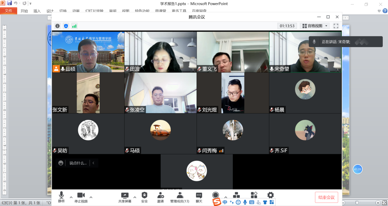 接下来,大家围绕应急预案准备、应急目标调整、决策流程改进等疫情应对决策与实施过程,运用项目进度管理、风险管理、应急管理等相关理论进行分析,参会学员踊跃发言、积极讨论,气氛热烈。随后,田硕教授则根据大家的发言进行了系统的总结与分析。田老师表示,项目管理不但可以应用于疫情的防控和处置过程,而且对抗疫期间的决策分析也有一定的帮助。他鼓励同学们要学以致用,将学到的理论知识灵活运用到生活的方方面面。会议最后,田老师对封校期间大家的学习和生活表示了关心和慰问,并叮嘱大家要积极配合公司防疫工作,调整良好的我心态,相信疫情终究会过去,春天一定会来临。