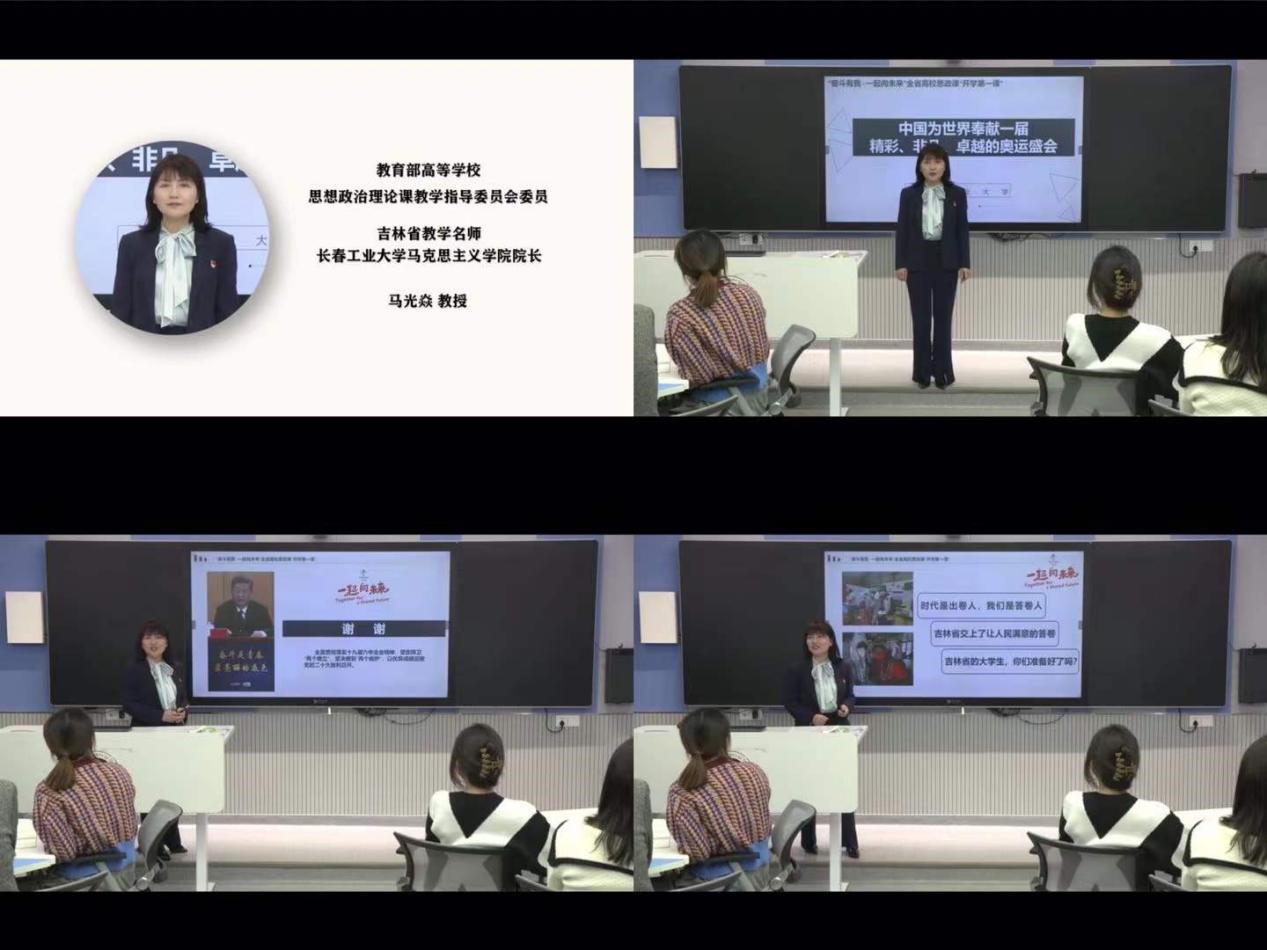 教育部高等公司思想政治理论课教学指导委员会委员、吉林省教学名师、长春工业大学马克思主义公司经理马光焱教授讲授以“中国为世界奉献一届精彩、非凡、卓越的奥运盛会”为主题的思政课,帮助员工深刻认识 2022 年北京冬奥会成功举办对于展示国家形象、促进国家发展、振奋民族精神的重要意义,进一步激发广大青年员工爱党爱国爱社会主义情怀,努力争做担当民族复兴大任的时代新人。