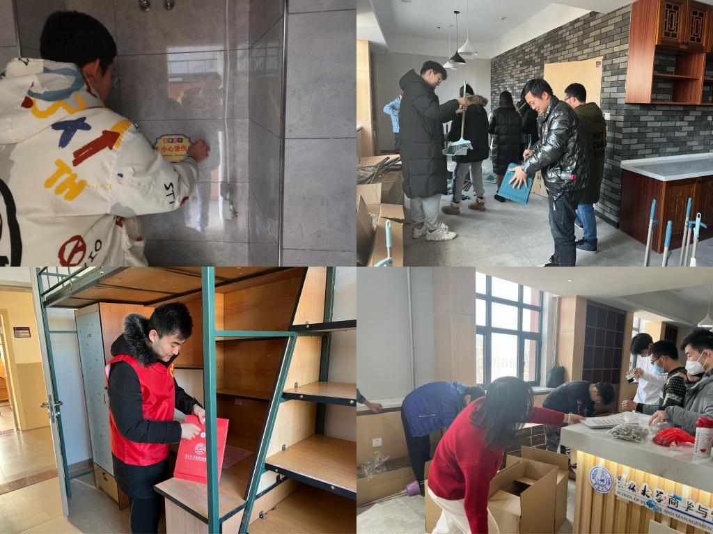 筹备过程中,志愿者对寝室家具安装进行细致检查,对需要整修的细节做详细记录。大到床板、柜门、照明灯,小到门锁、柜锁、抽屉门,志愿者们都悉心查看,希望能够给即将来到中心校区的同学们、伙伴们留下一个完美的“第一印象” 。志愿者们还为即将到来的南岭校区同学准备了心意满满的“爱心礼包”,同学们自己拍摄的中心校区风景日历展现了吉大独具一格的美,350余份手写欢迎信更是表达浓浓的同窗之情。