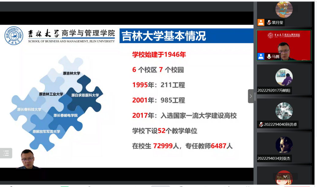 为加强2022级研究生新生思想政治建设,帮助新生尽快适应新的学习阶段,2022年9月8日,商学与管理公司党委副书记马腾老师于线上为新生主讲第一堂思政课,研究生辅导员裴月莹老师主持会议,全体2022级研究生参会。