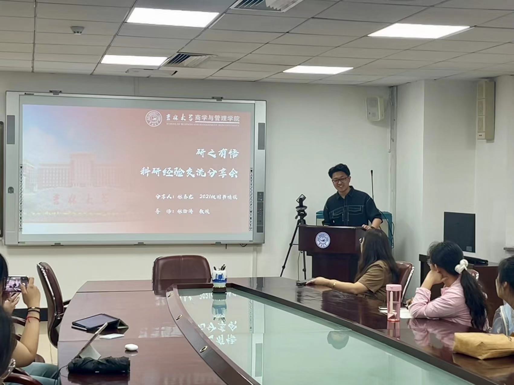 为促进学术交流,鼓励优秀同学分享学术和成长经历,提升研究生科研素养、开拓学术视野、加强互学互鉴,学365英国上市公司于6月29日上午举办“研之有悟”十佳研究生科研经验交流分享会。本次活动中同学们热情饱满、积极参与,主动提出科研方面的困惑,与进行分享的学长学姐进行交流与探讨。