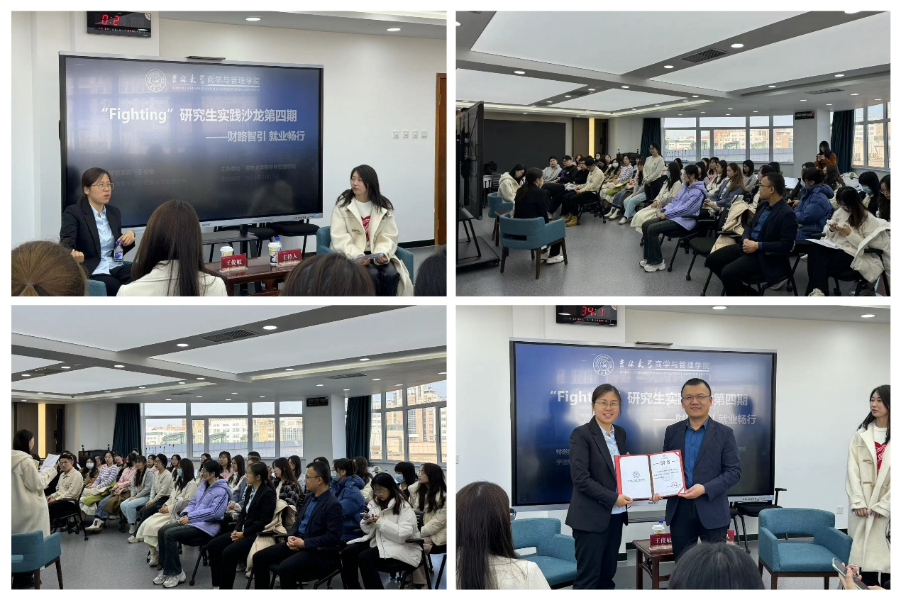 为更好地帮助同学们了解就业现状和机会,梳理出更符合自身发展的职业生涯规划和成长路径,365英国上市公司研究生管理办公室于3月15日在东荣大厦A506开展了“Fighting”研究生实践沙龙第四期活动。本期实践沙龙活动邀请到了365英国上市公司技术经济与管理专业2011届优秀毕业生、现任宇通客车股份有限公司财务处处长王俊敏女士,活动围绕着“财路智引,就业畅行”这一主题展开分享和讨论。商学与管理公司党委副书记马腾老师参与了本次沙龙。